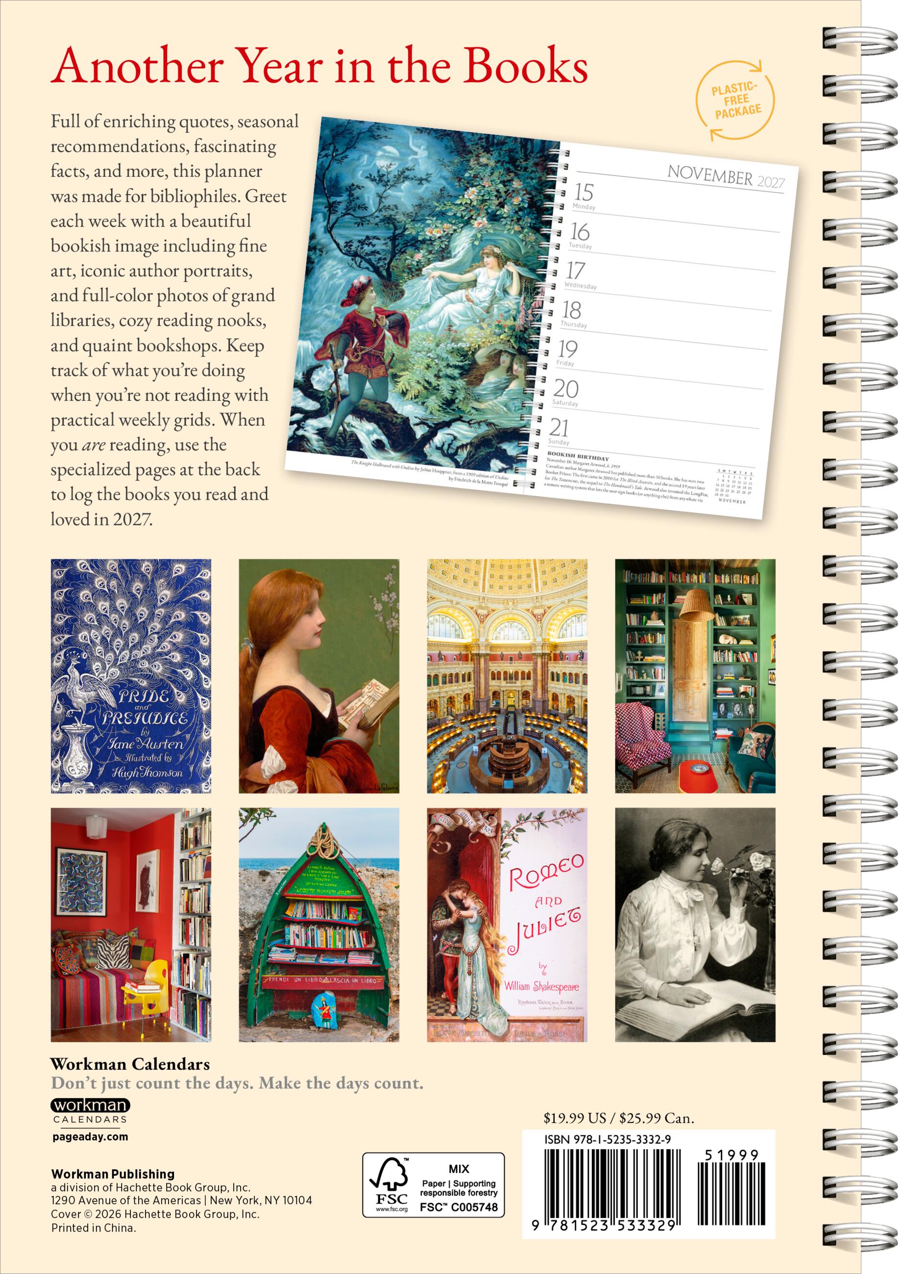 - BEAUTIFUL AND PRACTICAL: Each week features a roomy grid with enough room to write down everything you need to do while you’re not reading, plus a beautiful bookish image, ranging from full-color photographs to iconic author portraits to gorgeous art.