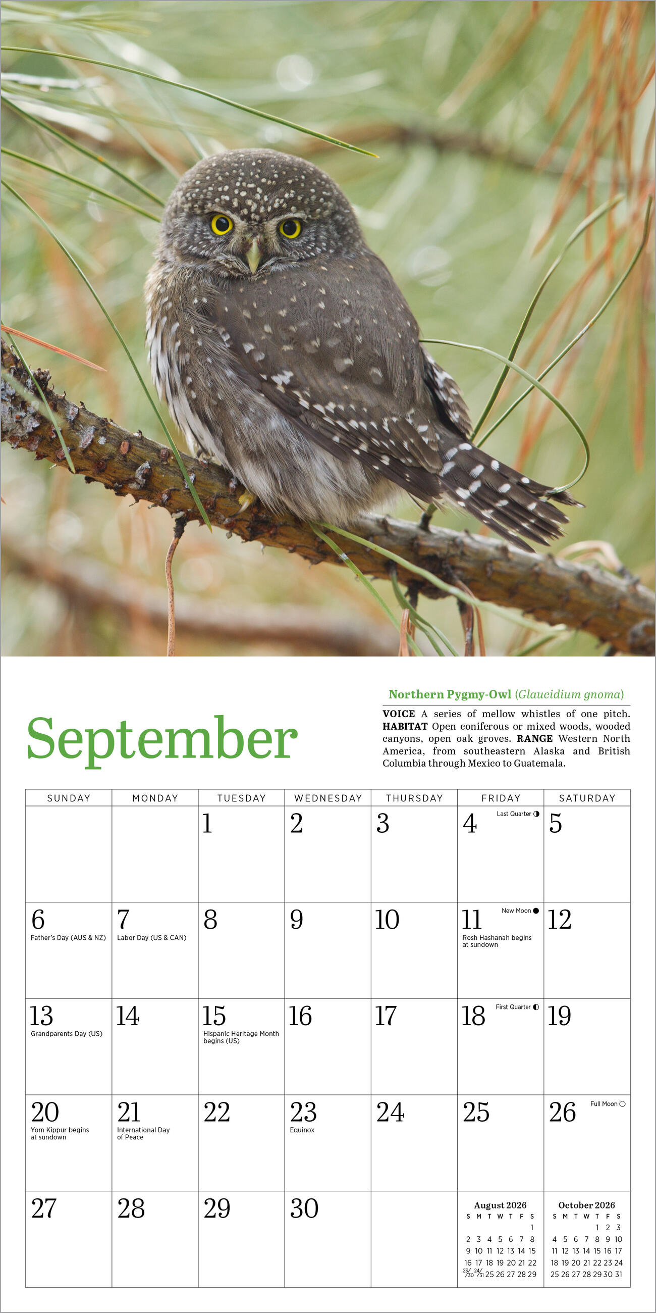 Audubon Little Owls Mini Wall Calendar 2026