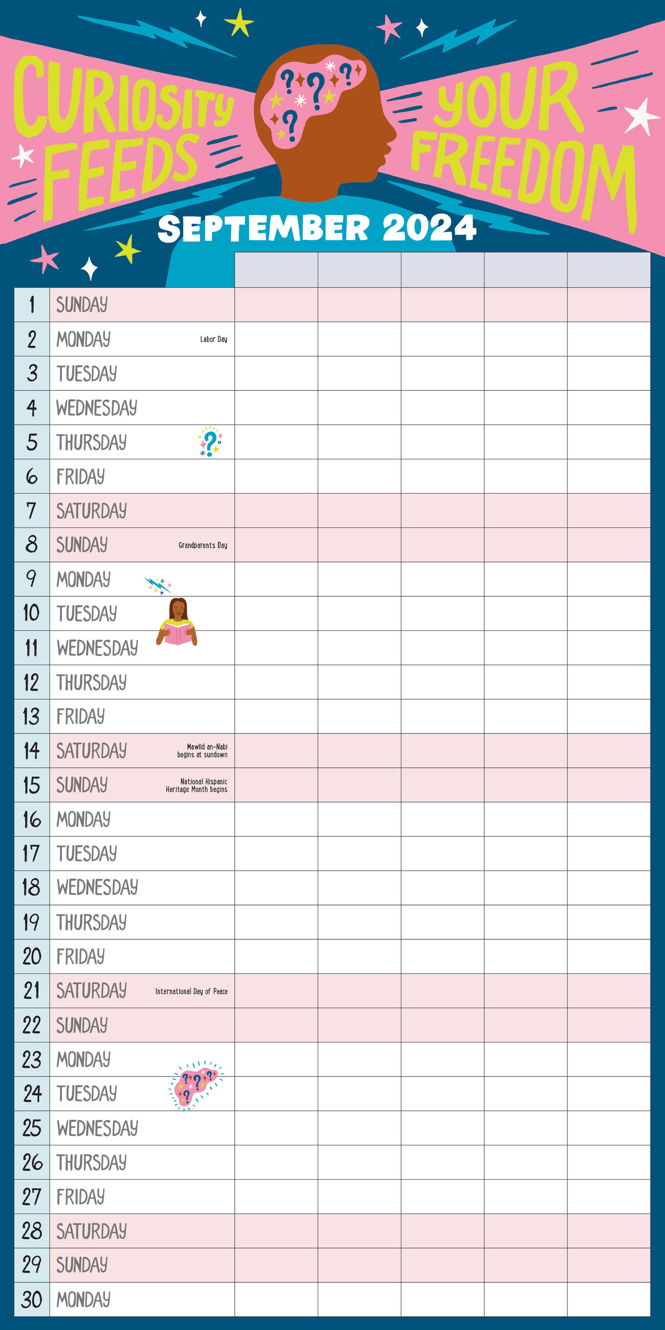 - WARMTH, INSPIRATION – AND STICKERS!: Each month features different fun illustrations and empowering messages like There is power in our unity. Plus a drop-down storage pocket and over 170 stickers for marking special days!