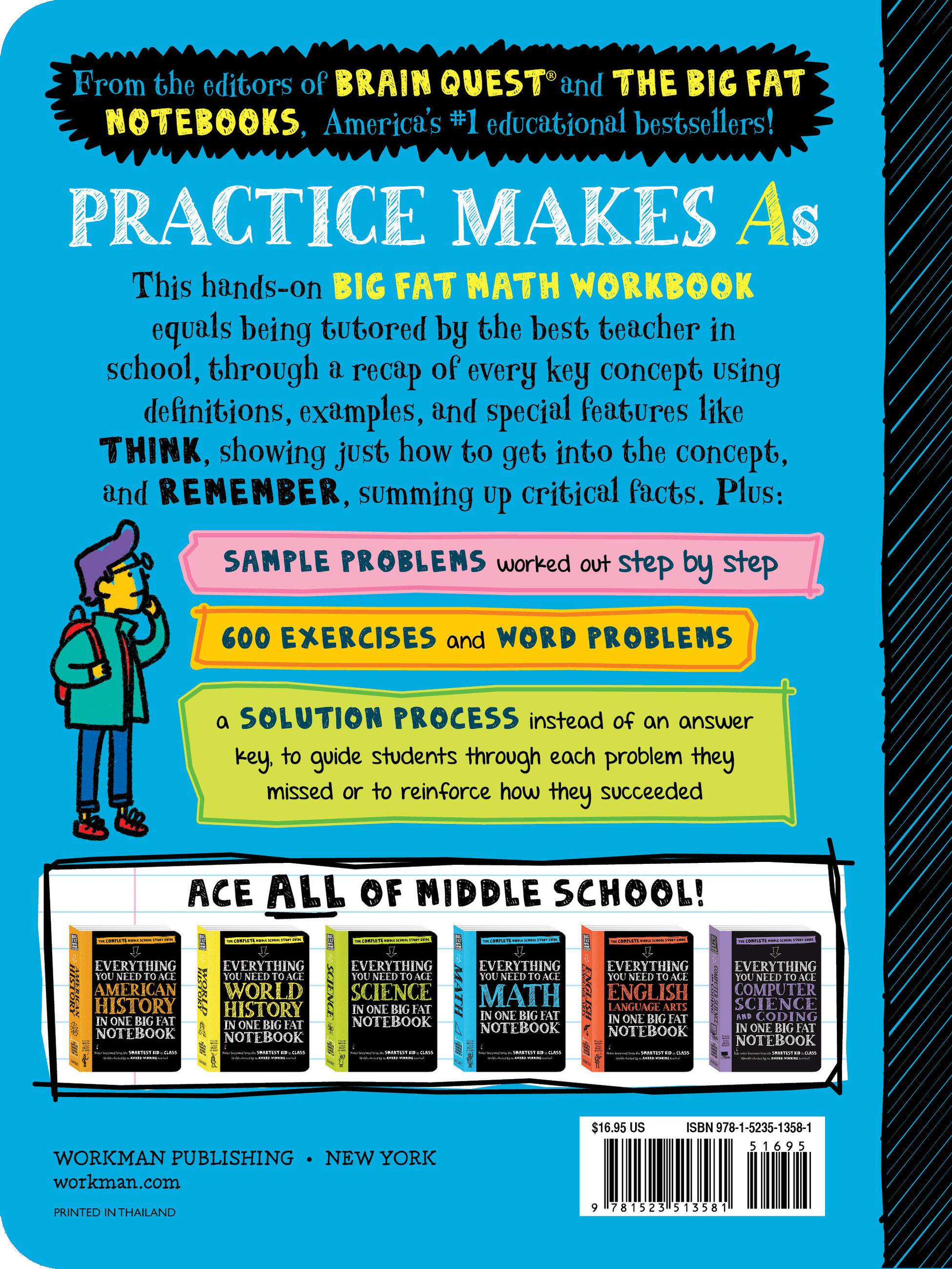This hands-on Big Fat Math Workbook equals being tutored by the best teacher in the school, through a recap of every key concept using definitions, examples, and special services like THINK, showing just how to get into the concept, and REMEMBER, summing up critical facts. Plus: Sample problems worked out step by step. 600 exercises and word problems. A solution process instead of an answer key to guide students through each problem they missed or to reinforce how they succeeded.